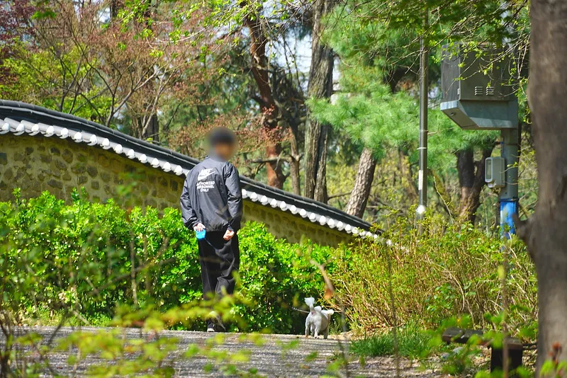 우리 일행이 반려견과 함께 슬로우 조깅하는 모습입니다. 힘든 기색 없이 편안한 표정으로 봄바람을 즐깁니다. 슬로깅의 기본자세는 어렵지 않습니다. 턱은 살짝 들고 시선은 전방을 바라본 채, 허리와 가슴을 활짝 펴고 상체는 살짝 앞으로 기울여 자연스럽게 움직이면 됩니다.