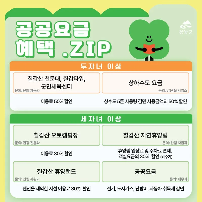 #청양군 #다자녀혜택 #육아꿀팁 #공공요금할인