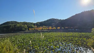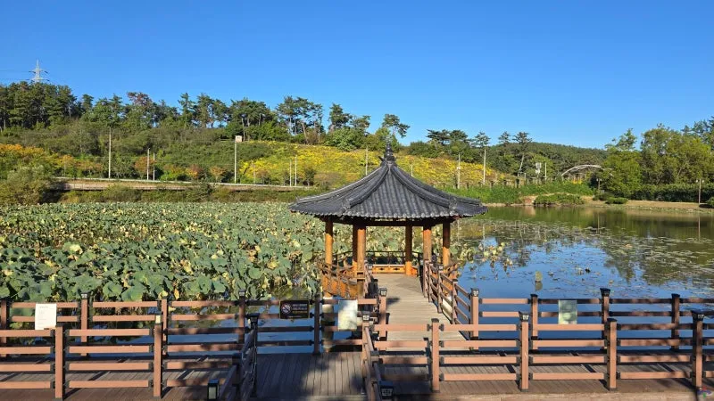 이곳에는 연꽃밭이 크게 자리하고 있어요.