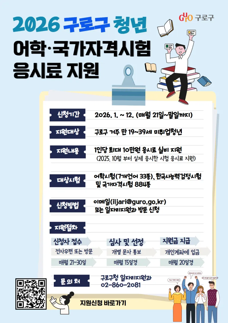 구로구 청년 정책, 어학/자격시험 응시료 지원(최대 10만원)