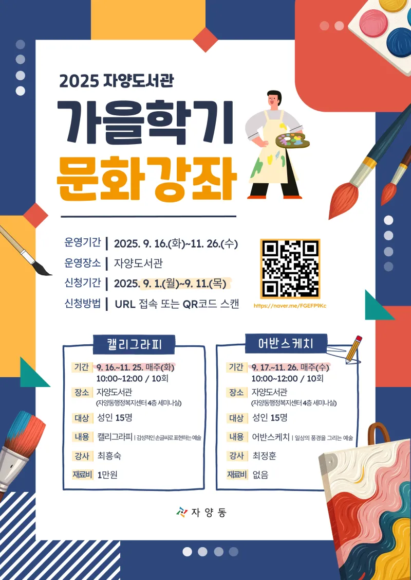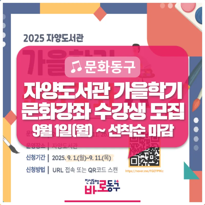 📖자양도서관 가을학기 문화 강좌 수강생을 모집합니다!