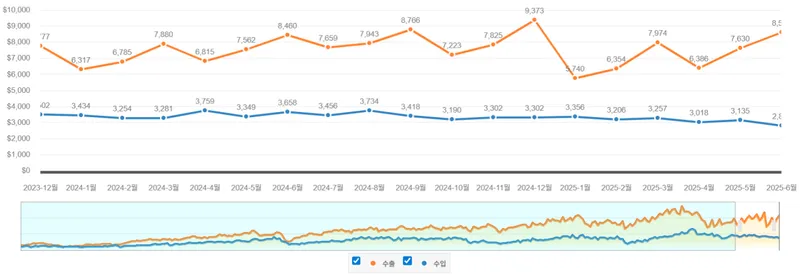 도는 31일 ‘2025년 상반기 수출입 실적’을 통해 수출 427억 달러, 수입 188억 달러를 기록해 무역수지 239억 달러 흑자를 달성해 전국 17개 시도 중 무역수지 1위를 기록했다고 밝혔다.