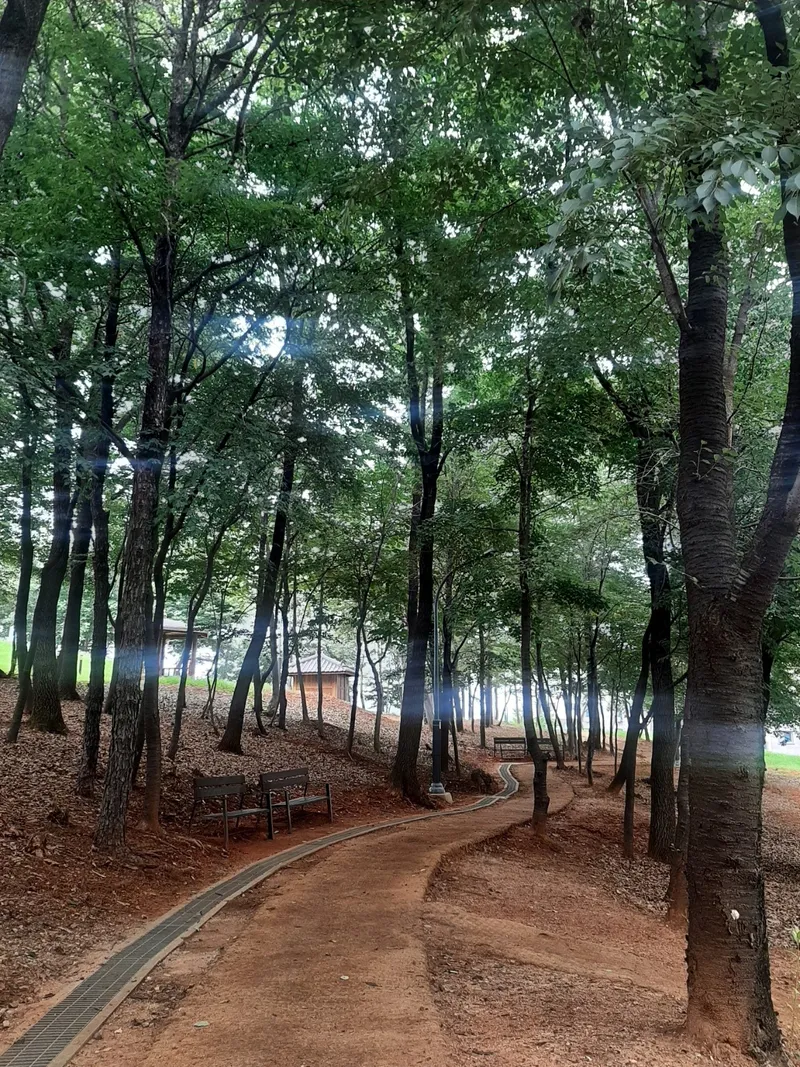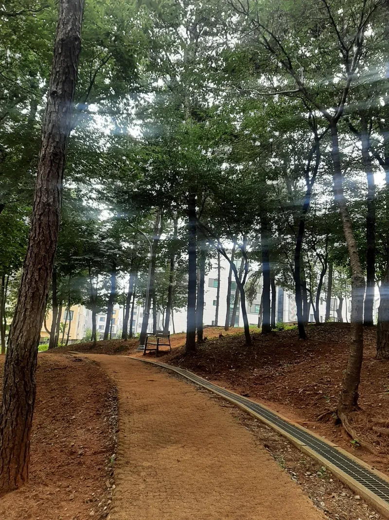 해가 쨍쨍인 여름날이지만 공원에 무성한 나무 덕분에 햇빛이 들어 올 듯 말 듯, 나뭇잎 사이로 맴도는 것 같습니다. 오르막길이 가파르지 않고 평지길이 대부분이라서 어린아이들, 어르신분들도 공원의 산책로를 쉽게 이용하실 수 있을것 같습니다.