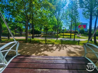 삼산 수목학습원 벚나무길 일부에 마련된 작은 쉼터인데요. 그중 하얀 그네 의자가 눈에 띄어 잠시 앉아 머물러 봤습니다.