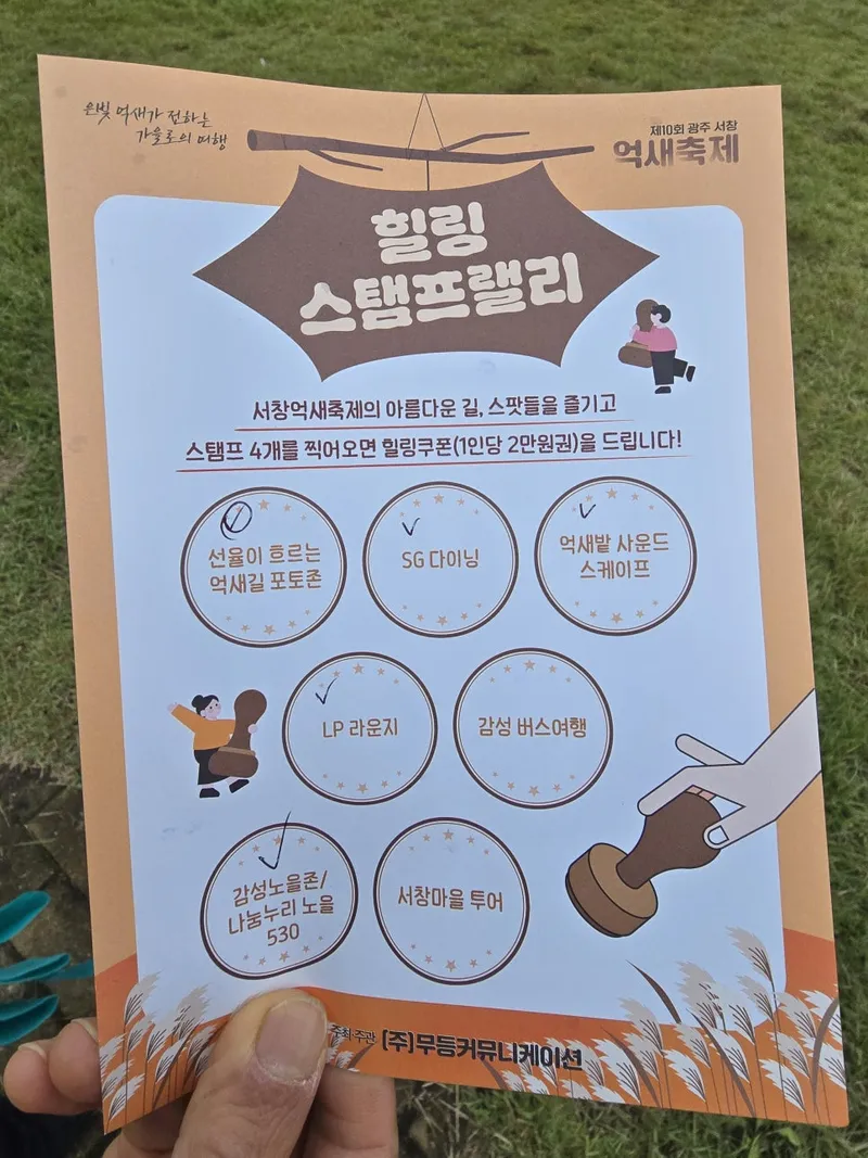 지금까지 가을이 오지게 즐거운 제10회 광주 서창 억새축제 힐링 스탬프 랠리로 힐링 쿠폰 득템 이야기였습니다.