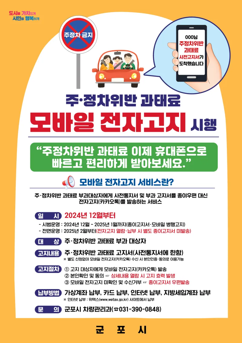 [군포이슈]군포시 주정차 위반 과태료 모바일전자고지 서비스 시행