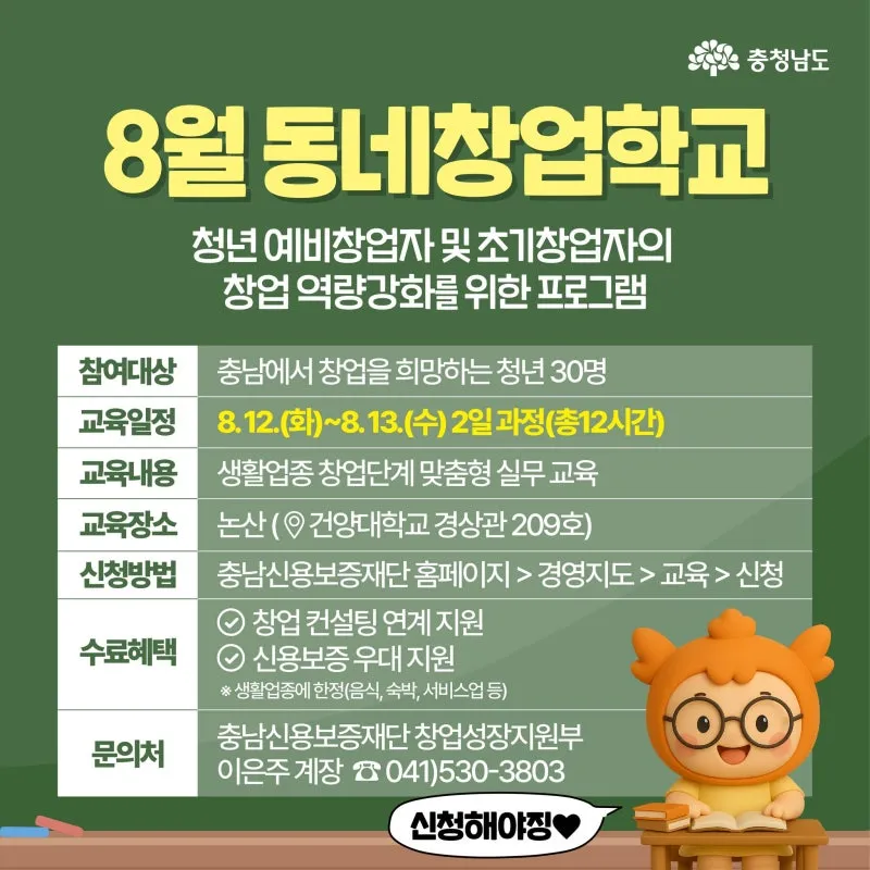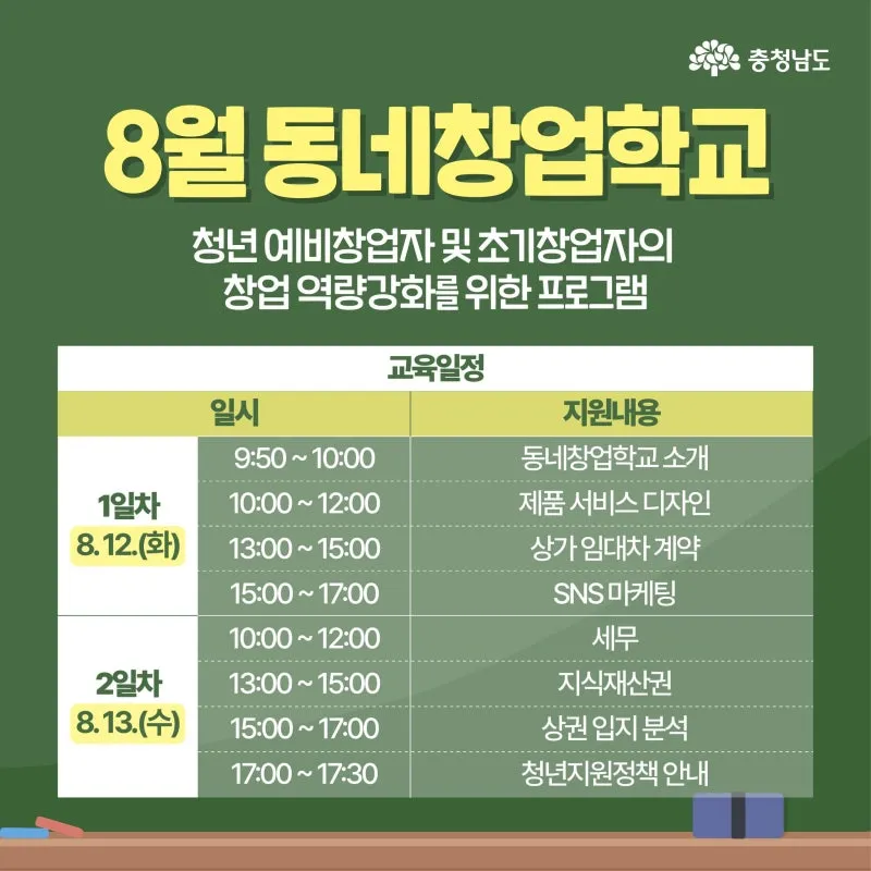 [충남 청년 교육 프로그램] 청년 취업·창업 한번에 해결~!