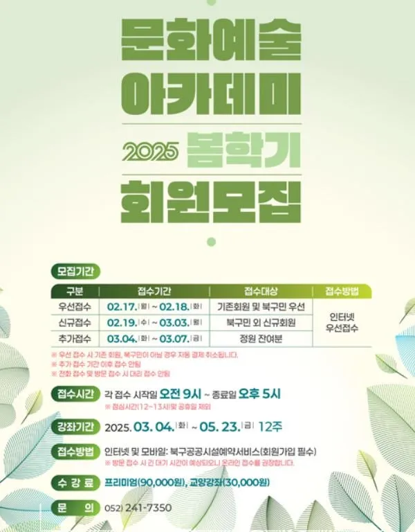 25년 봄학기 문화 예술 아카데미 회원 모집이 시작돼요