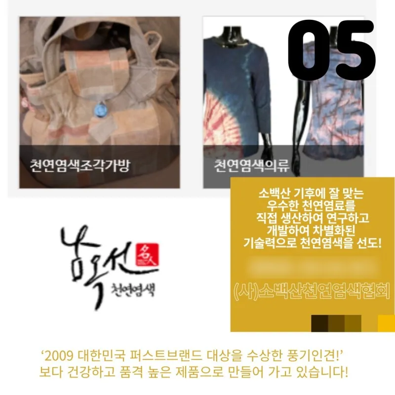 5️⃣ 소백산천연염색협회 천염염색 의류와 가방