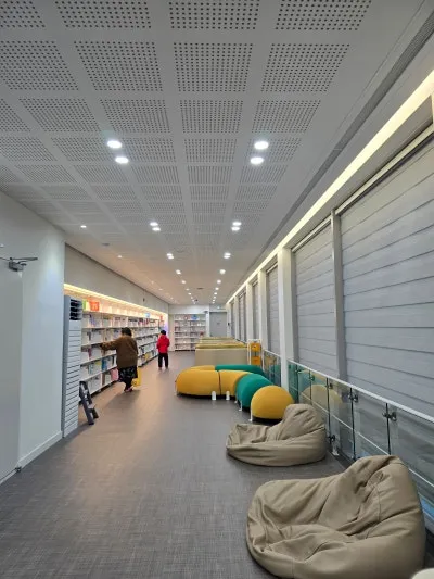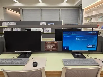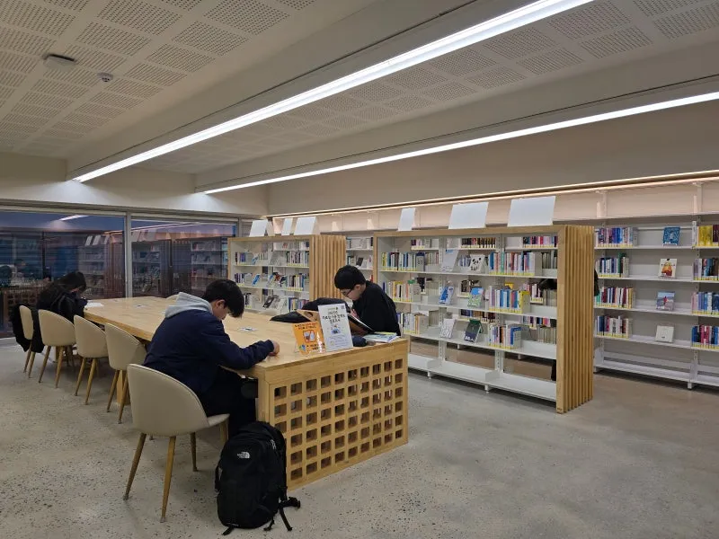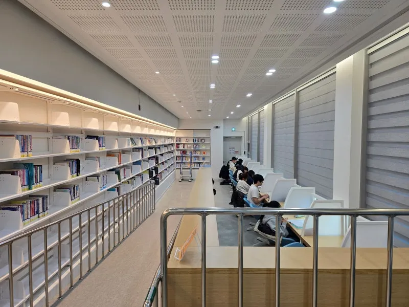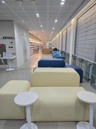 각 층에는 휴게 공간, 도서 검색 코너, 대여/반납 기기, 정보 검색대, 그리고 프린터(용지는 개인 지참)까지 마련되어 있어 도서관 이용이 매우 효율적이에요.