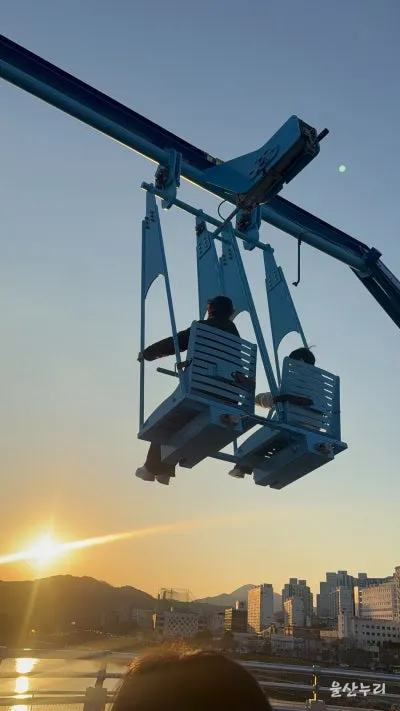 공중그네도 한 번에 2인 탈 수 있고 총 4분으로 공중그네에서 멋진 태화강을 감상할 수 있습니다.