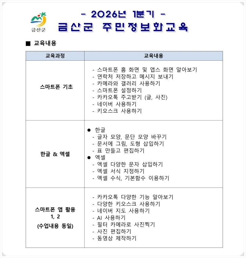 1️⃣2026 금산군 주민정보화교육