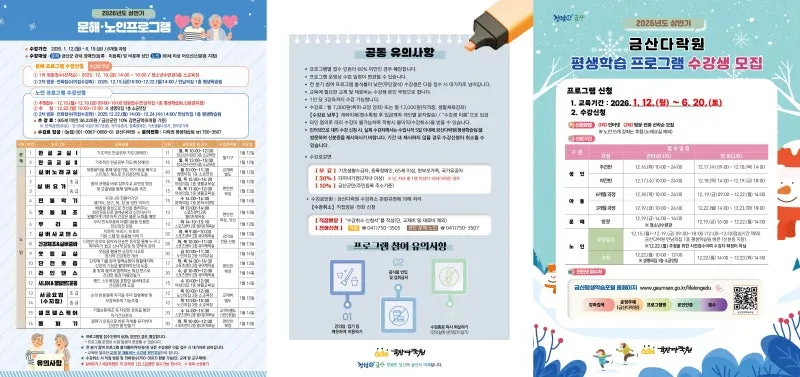 2026 금산군 특강 및 교육 통합안내(주민정보화교육, 평생학습프로그램, 겨울방학 특강 등)