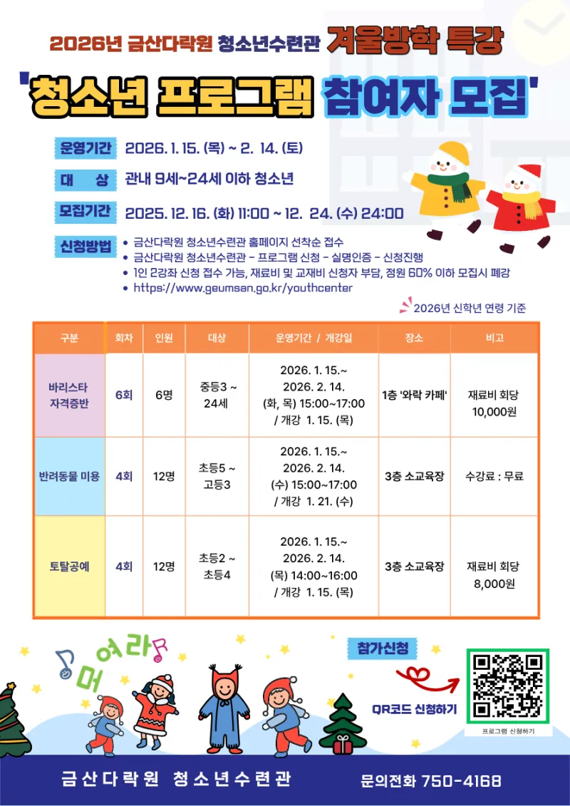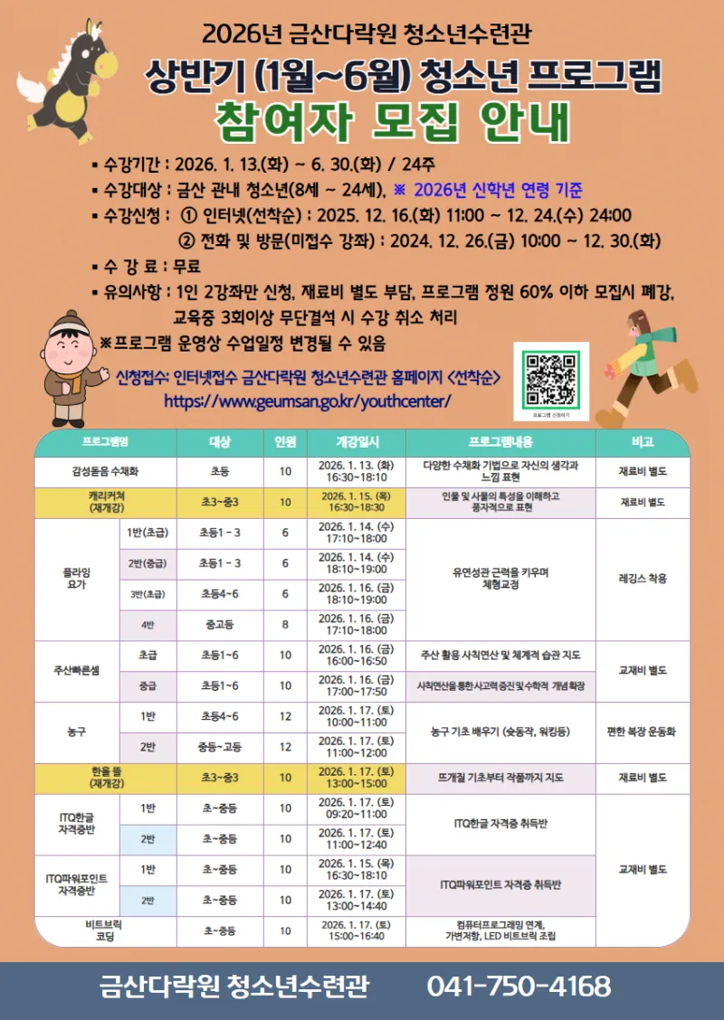 4️⃣2026년 금산다락원 청소년수련관