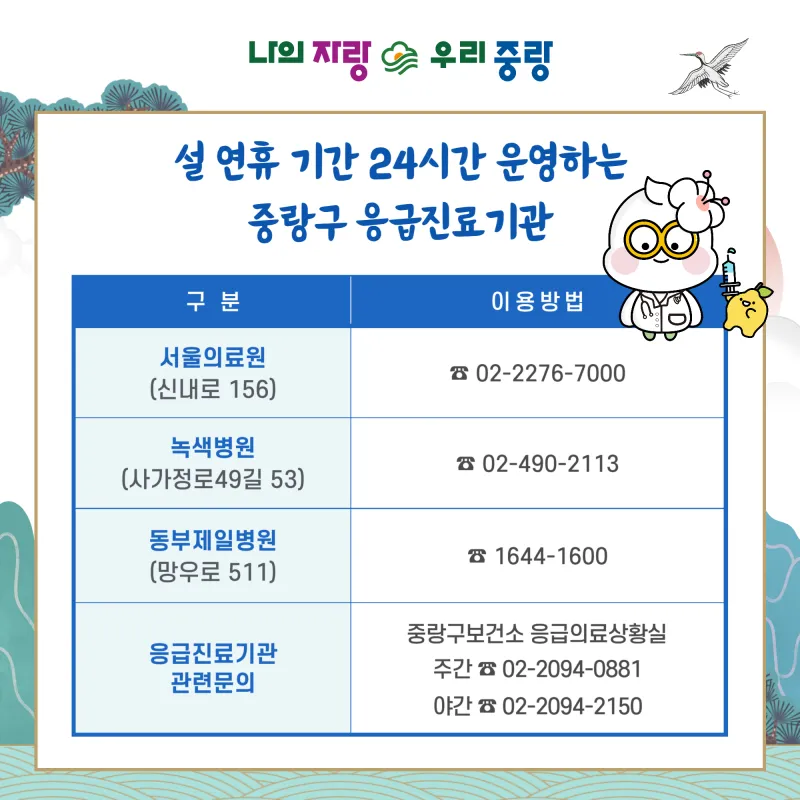 설 연휴 응급진료기관 및 휴일지킴이 약국 안내
