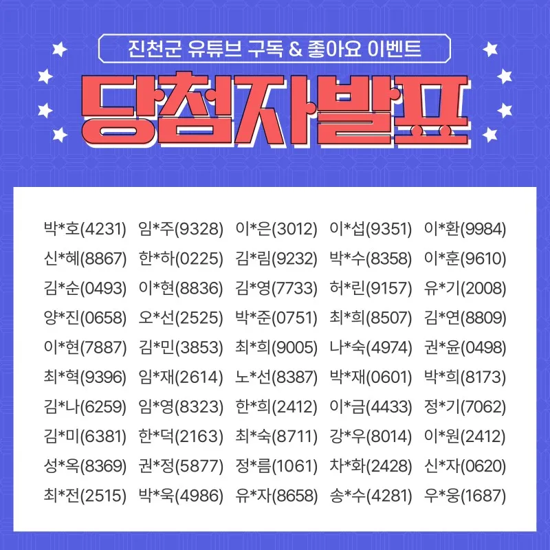 이제 추첨을 통해 선정된 당첨자 50명을 발표합니다🙂