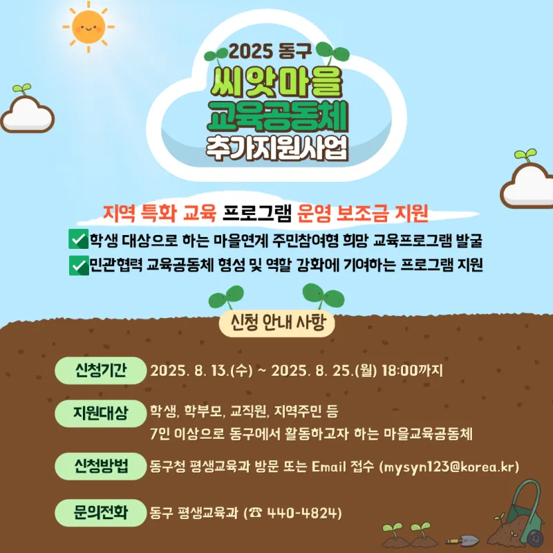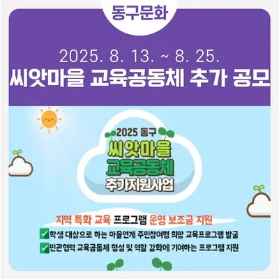 2025년 동구 씨앗마을교육공동체지금 신청해요!