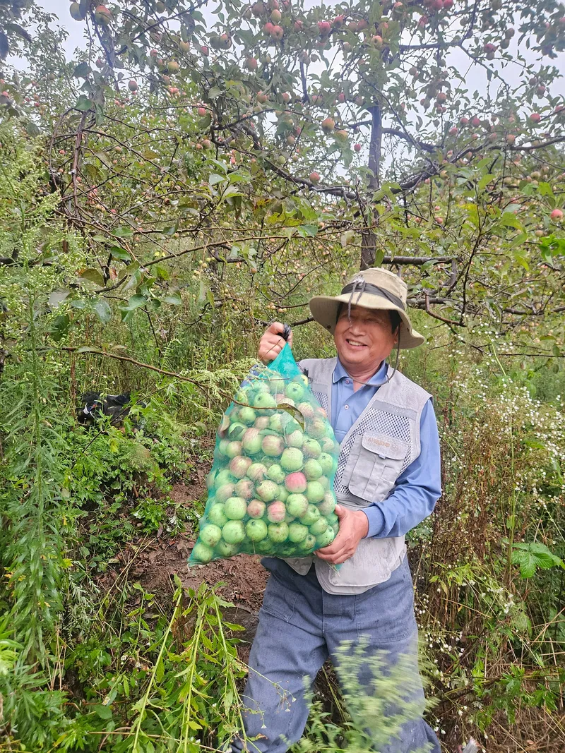 여름엔 버려진 과수원에서 사과를 따서 즙을 냅니다.