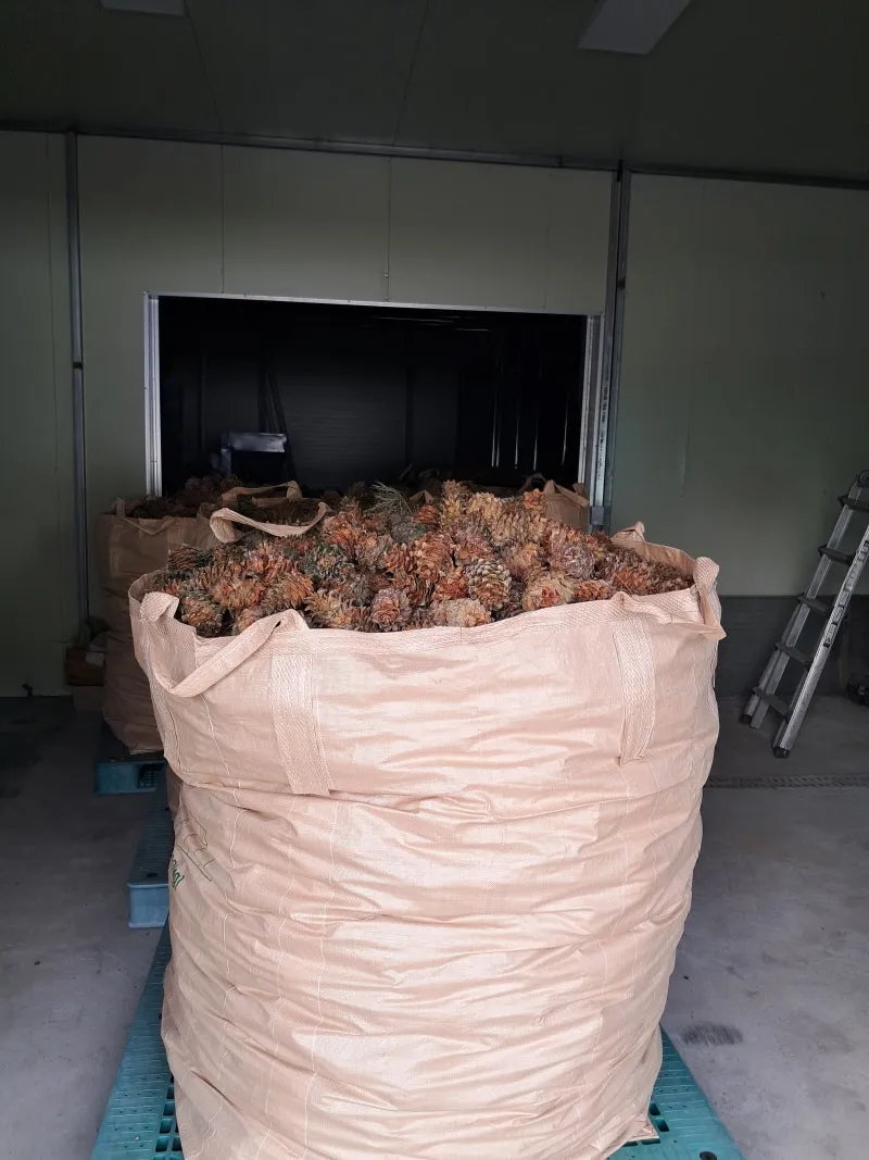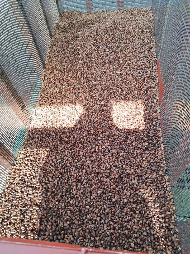 잣을 털고 잣을 활용한 파생 상품으로