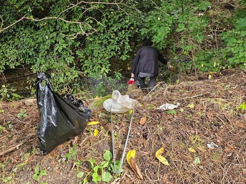 길가에 쓰레기를 주우며