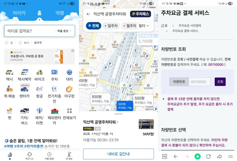 주차 결제도 차랑 번호 조회를 통해 사전에 결제할 수 있는데요,