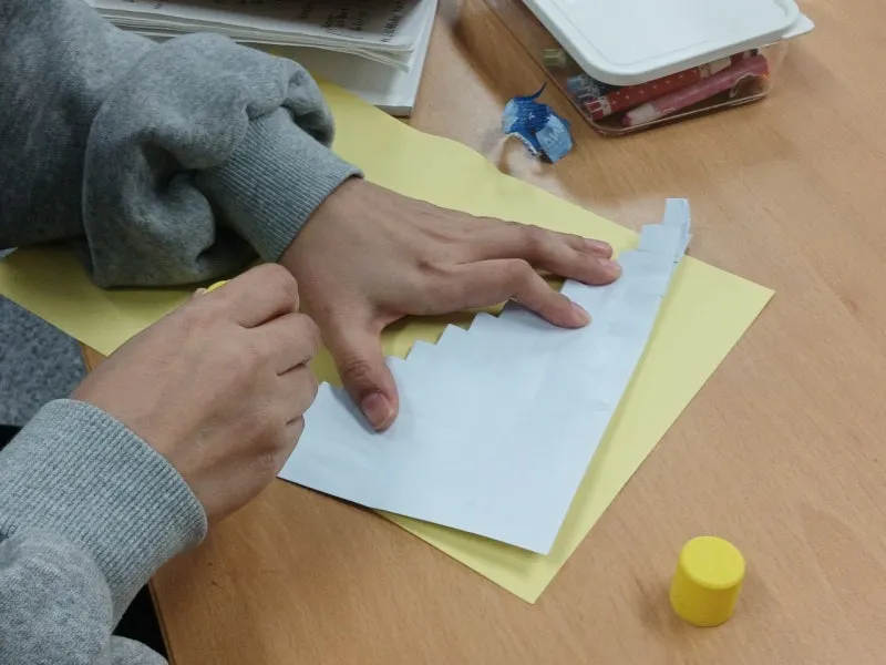 속지를 반으로 접고 가위로 자르고 접고 하는 과정을 반복하면은 입체카드를 완성할 수 있습니다.