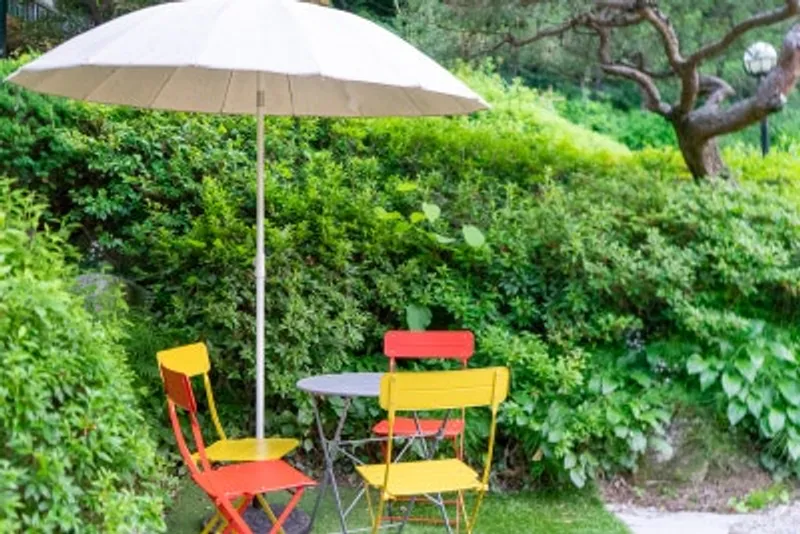 이곳에도 파라솔과 테이블이 설치돼 있어요.