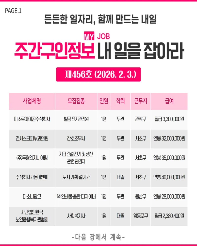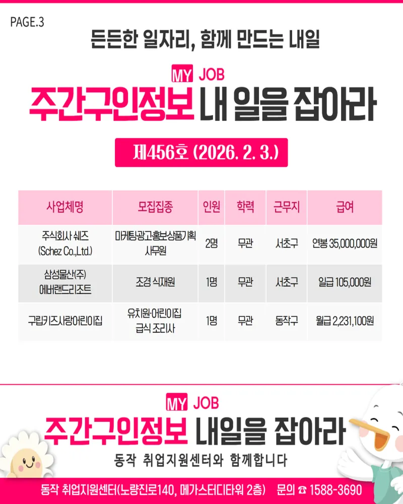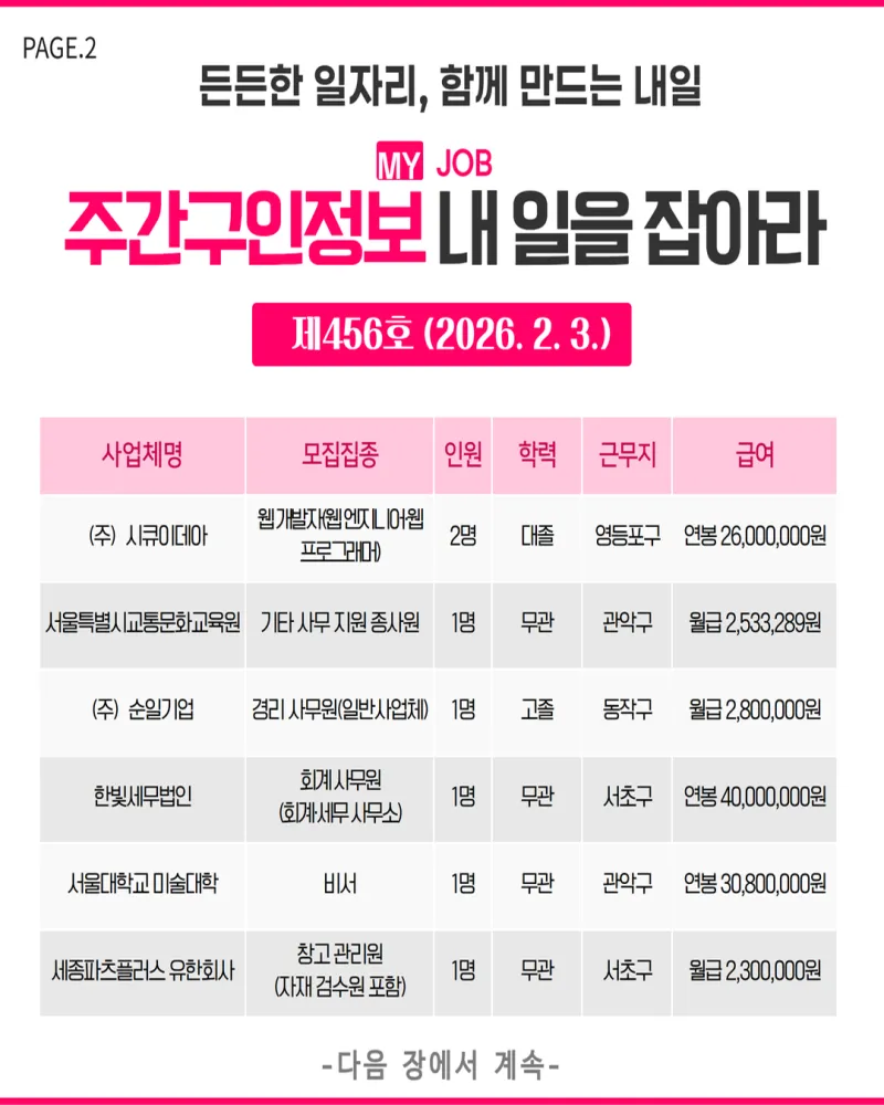 📚 주간구인정보🔎 내 일을 JOB아라 제456호 (2026.2.3.)