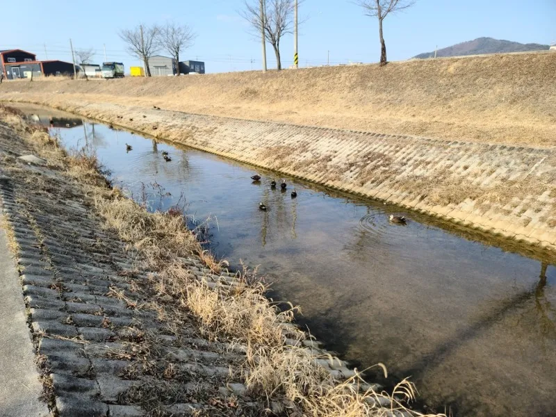 오산교 도착 직전, 하천에는 새무리가 모여 있었습니다.