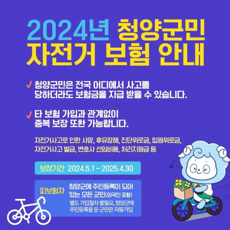 2024년 청양군민 자전거보험 안내🚲