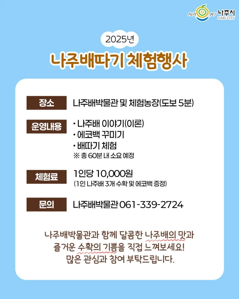 나주배박물관과 함께 달콤한 나주배의 맛과 즐거운 수확의 기쁨을 직접 느껴보세요!