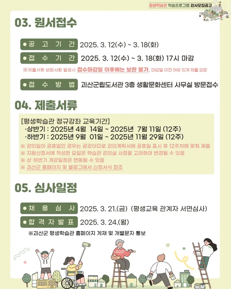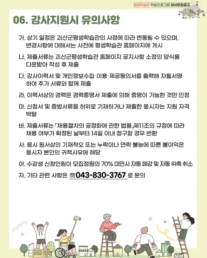 [괴산소식] 2025년 평생학습관 학습프로그램 강사모집 공고