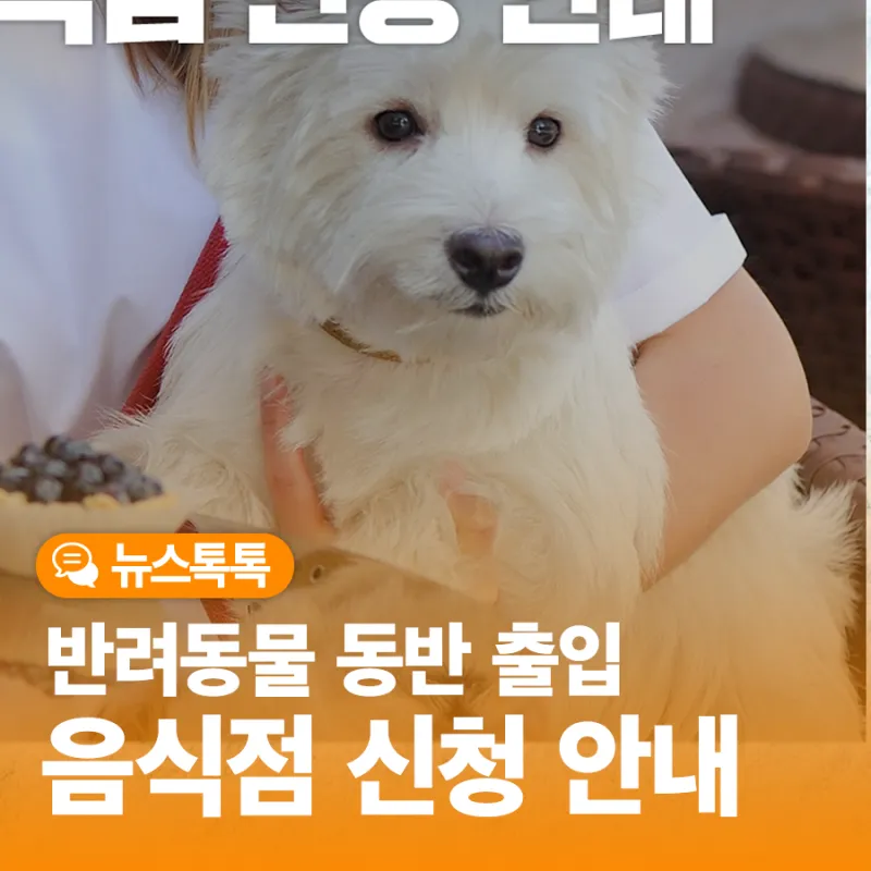 식품위생법 시행규칙이 일부 개정됨에 따라 반려동물(개, 고양이) 동반 출입 음식점 제도 시행(2026.3.1. 시행)예정이며, 신청을 원하는 영업자는 사전검토 요청 후 시설기준 완비시 운영 가능