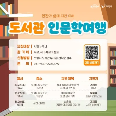 🖱 신청방법 : 보령시 도서관 누리집 선착순 접수