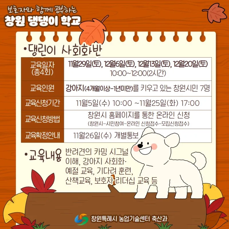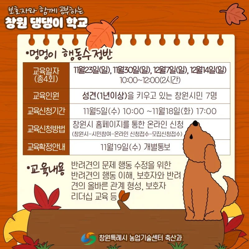 창원 댕댕이 학교 11월 교육 안내