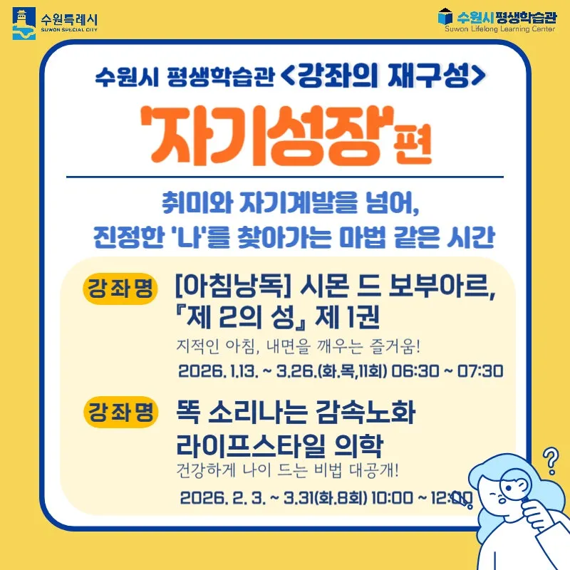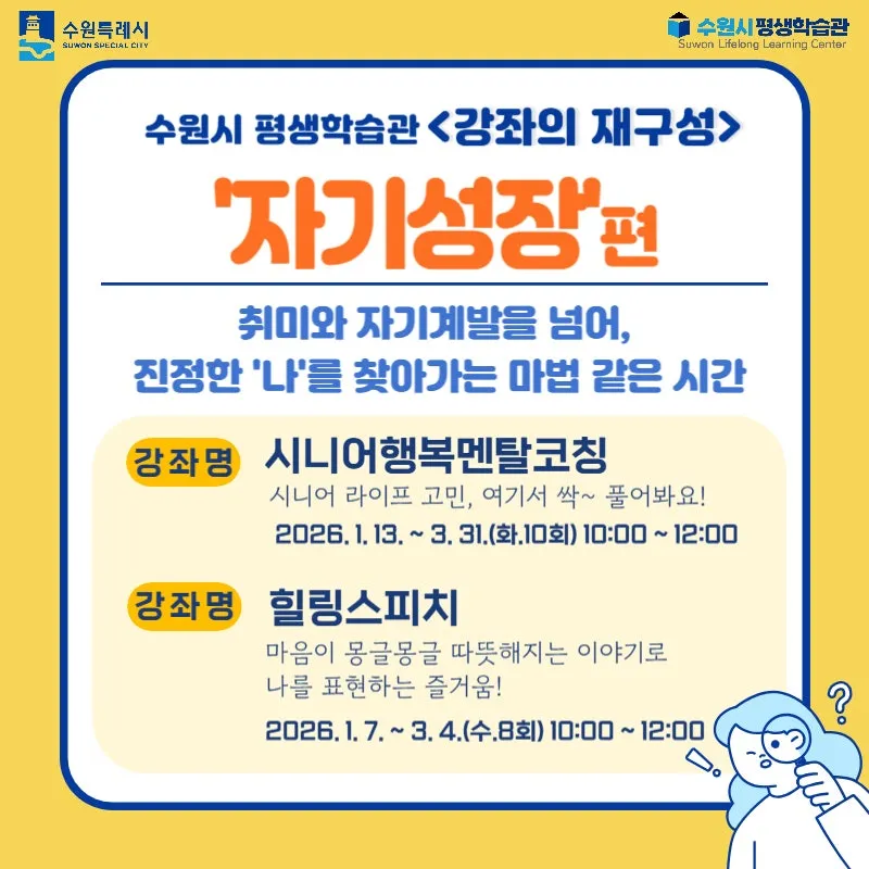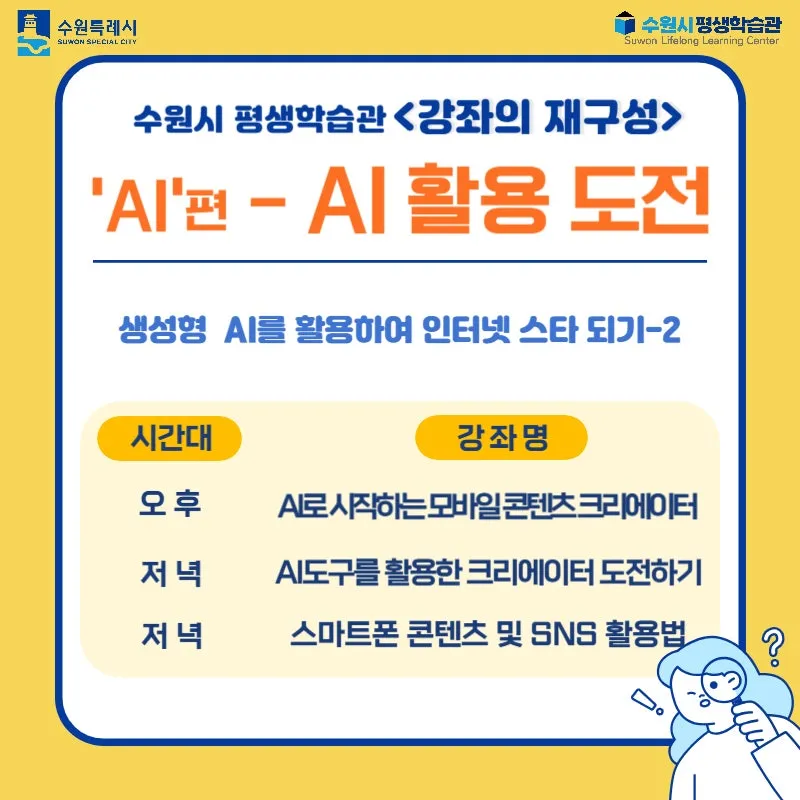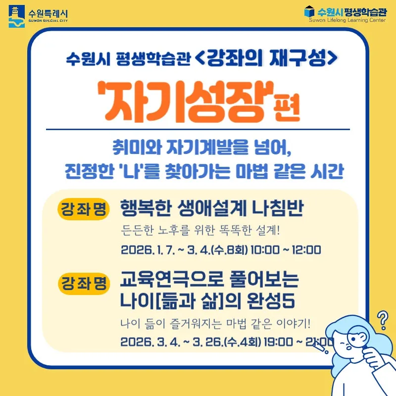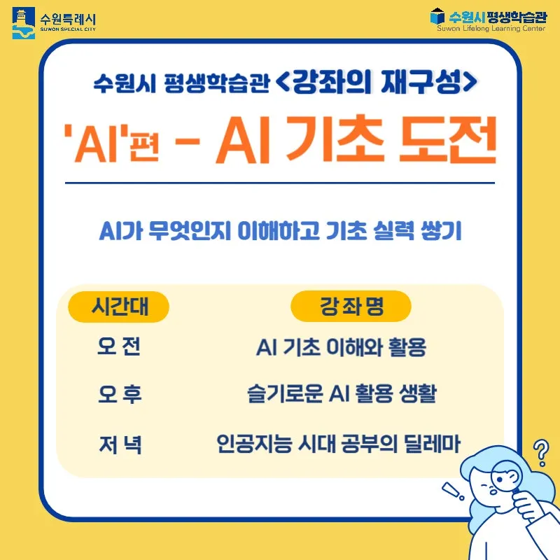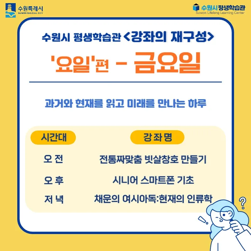 🔆진행 프로그램 ·신청 현황 등 변동이 있을 수 있으니, 자세한 내용은 수원시 평생학습관 참고
