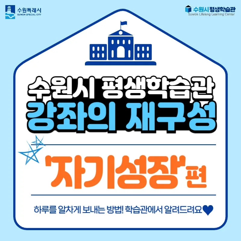 🏫수원 지관서가와 수원시 평생학습관은 다채로운 학습체험 프로그램으로 시민 여러분의 일상을 더욱 풍성하게 만들고 있습니다.