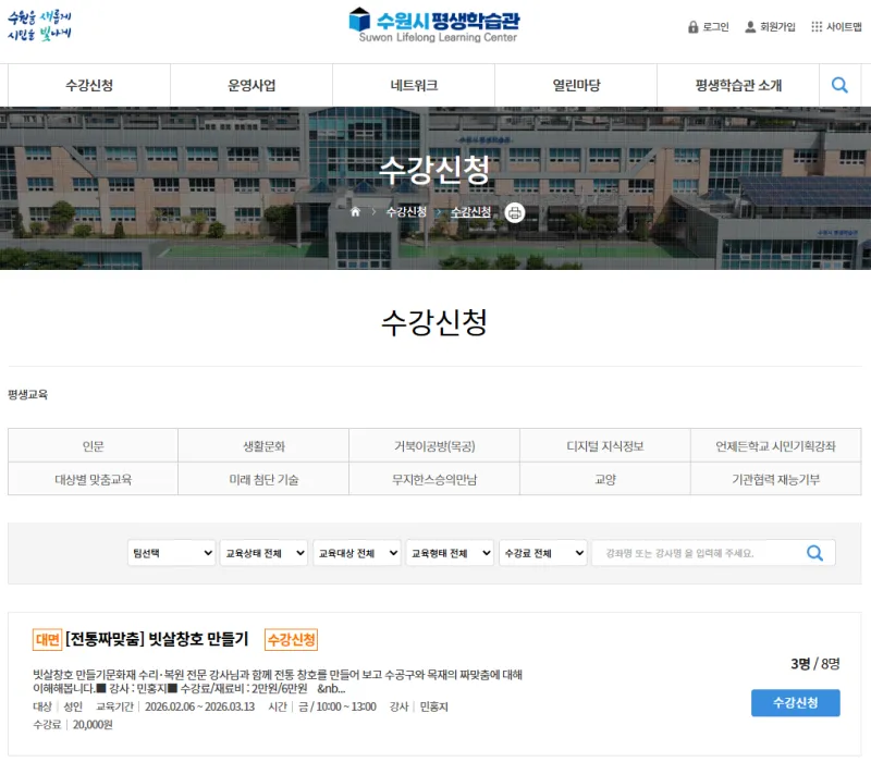 🌐수원시 평생학습관 홈페이지 - 수강신청