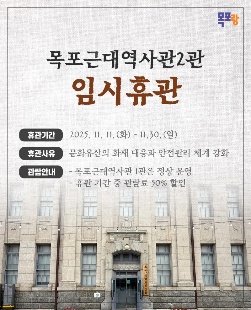️ 목포근대역사관 2관 임시휴관 안내