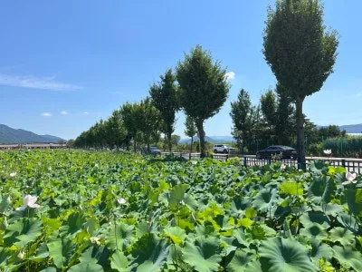 여름철 연꽃이 만개하는 연못 주변 산책로!