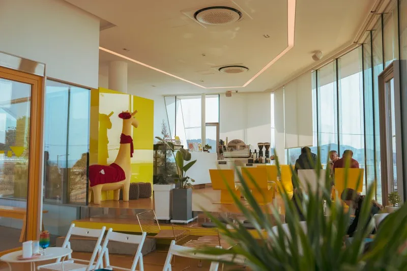 1층 실내도 노란색과 초록 식물들이 어우러진 예쁜 공간이고,