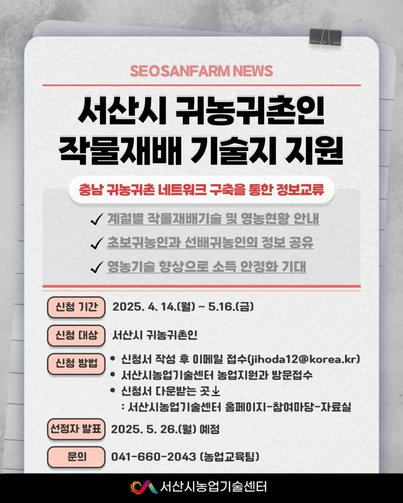 서산시농업기술센터에서는