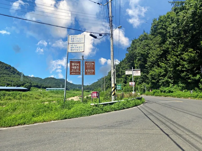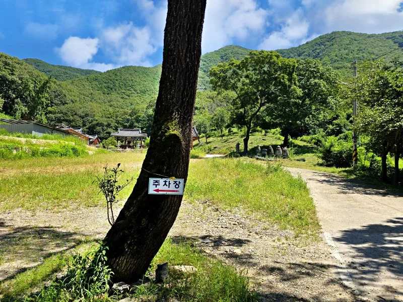 영지사 입구는 넓고 환하게 트여 있었고 왼쪽으로 올라가면 주차장이 있습니다.