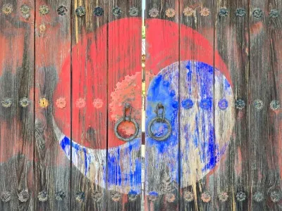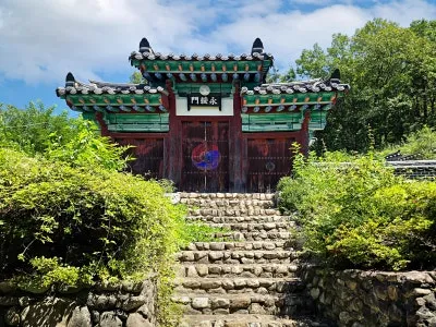 서원 입구 태극 문양이 그려져 있는 지수문이 적힌 문 옆으로 들어가 봅니다.