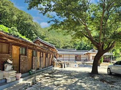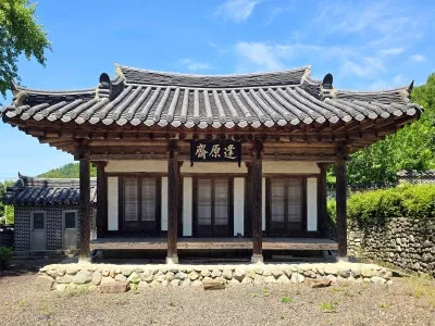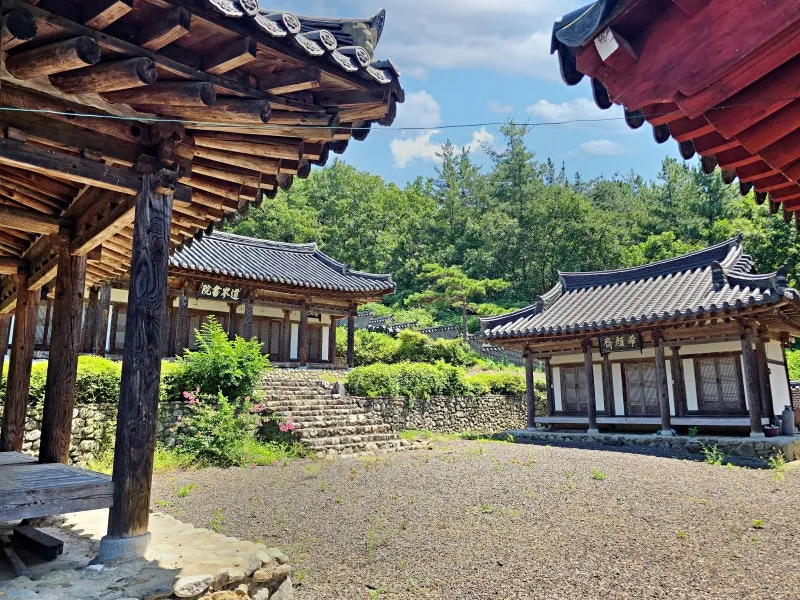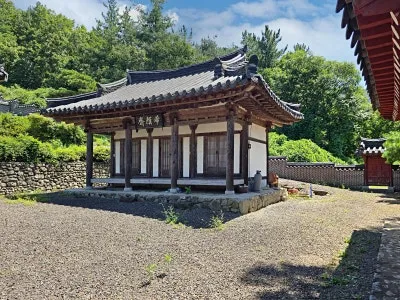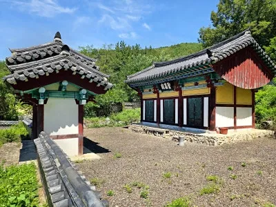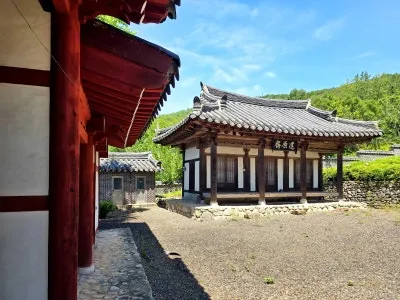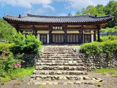 100m 지점 영지사 방향 왼쪽 언덕에는 새로 복원한 듯한 서원이 자리 잡고 있었습니다.