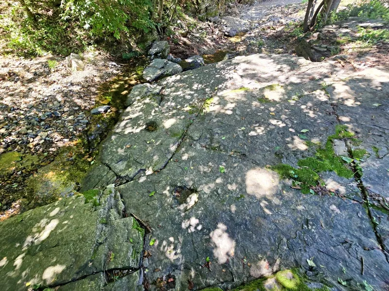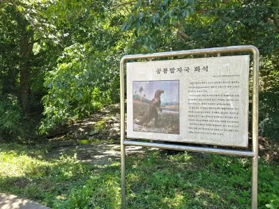 영지사 입구 계곡으로 내려가는 초입에 있는 공룡발자국 화석입니다.