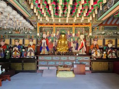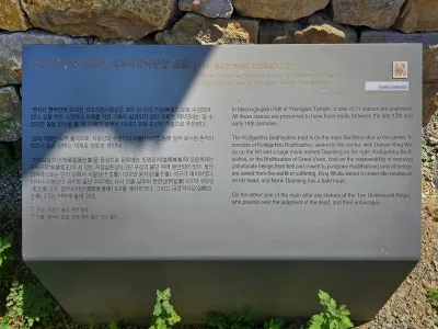 대웅전 오른쪽 명부전에 모셔진 석조지장시왕사은 모두 31구의 존상(尊像, 지위가 높고 귀한 형상)으로 구성되어 있다고 합니다.