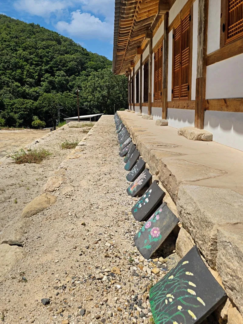 기와에서 숨을 쉬고 있는 들풀과 향기를 뿜어내는 꽃들까지 마음을 붙들어 맵니다.