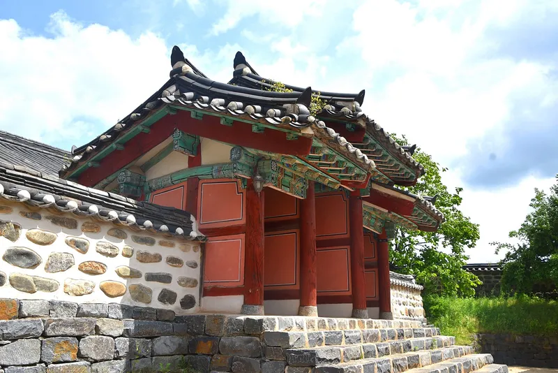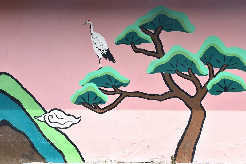 홍살문을 지나 안으로 가는 길 담에 벽화가 그려져 있어 정겨움을 줍니다. 벽화가 그리 많지는 않아도 걸으면서 정겨운 세상을 만날 수 있으니 발길이 더 가벼워집니다. 주변에 피어나는 꽃도 아름다운 세상을 만들어줍니다.