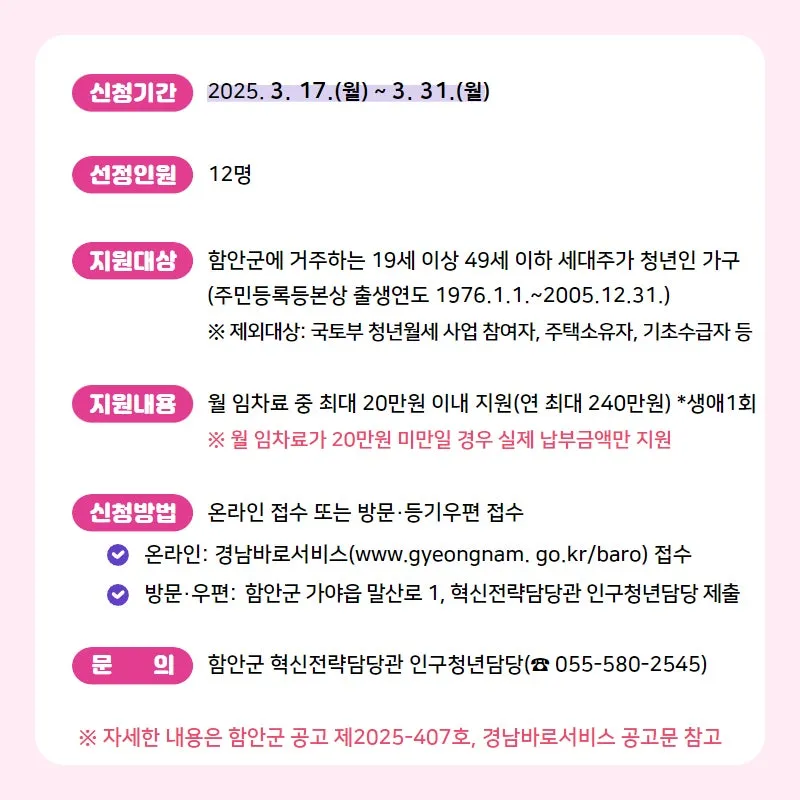 2025년 함안군 청년월세 지원사업📣